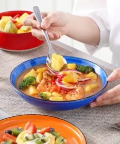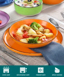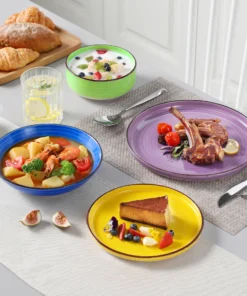 12/18/24PCS Ceramic Plate Set Mix-Color Handpainted Spirals Pattern 4/6PCS Dinner Plates/Dessert/Bowl/Soup Plates