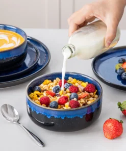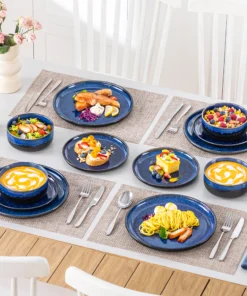【Durable stoneware for Everyday Use】Crafted from durable stoneware, this dinnerware set is built to last. It’s designed for daily use, with a sturdy construction that ensures it will maintain its beauty for years.