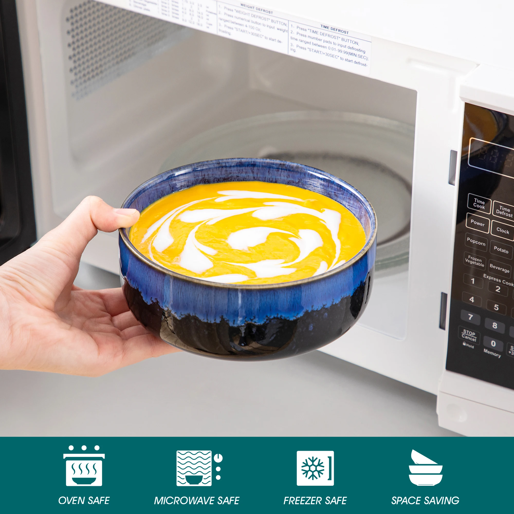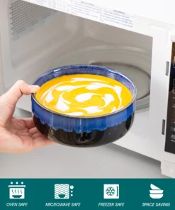 【Beautiful Reactive Glaze】Each piece in this plates and bowls set is finished with a reactive glaze that creates unique color variations. The glaze gives every plate and bowl its own character, adding elegance and charm to your table setting.