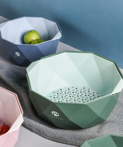 The basket is designed with multiple drainage holes to effectively drain excess water from washed vegetables and fruits. This feature helps to keep produce fresh and prevents waterlogging.