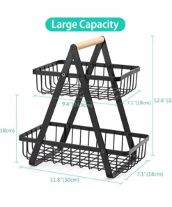 2-Tier Metal Fruit Vegetables Portable Basket Kitchen Storage