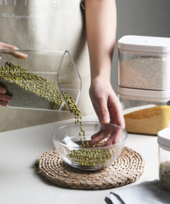 - Set of kitchen storage boxes with a transparent design, making it easy to identify the contents.