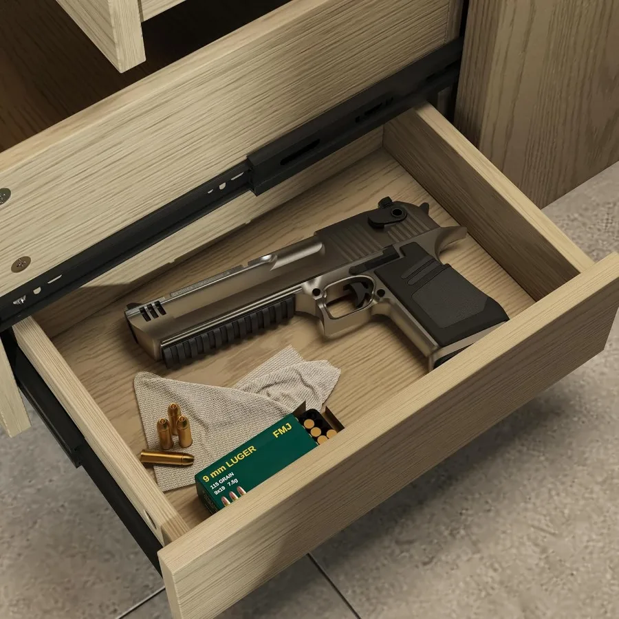 5Drawer Nightstand with 2 Gun Drawers Versatile Sofa Bed Side Table End Table with Wood Grain Finish Modern Night Stand for Bed