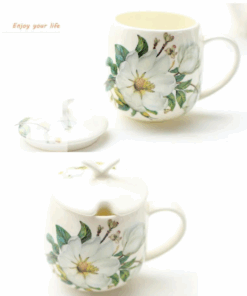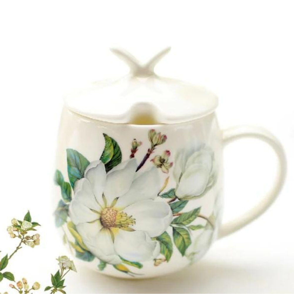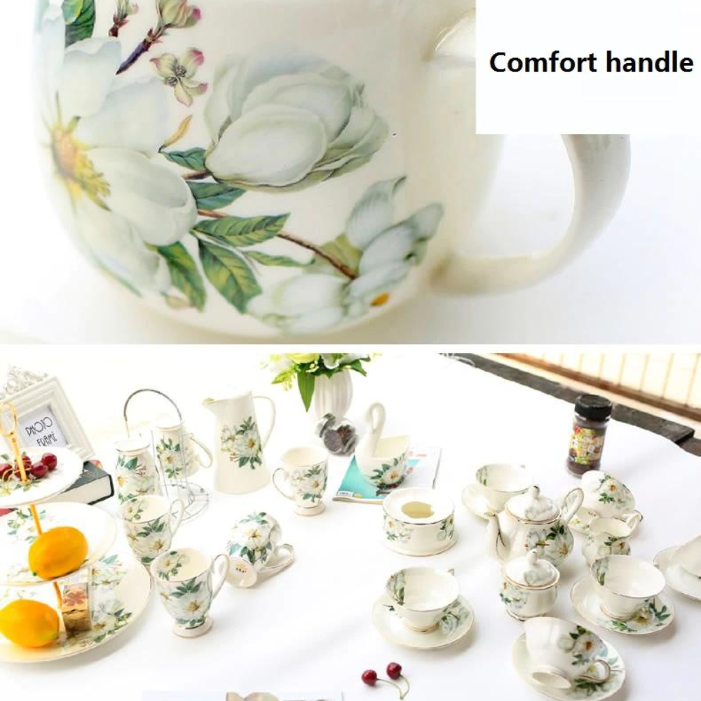 Bone China Coffee Cup Spoon Set 400ml Luxury Ceramic Mug Top-grade Porcelain Tea Cup Cafe Party Drinkware. Beautiful flower art