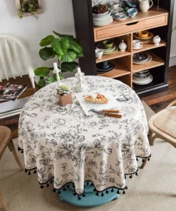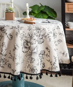 - High-Quality Rose Floral and Plants Pattern: This round tassel tablecloth is produced with heavy weight cotton linen fiber which is breathable and moisture adsorbent, durable and good quality.