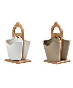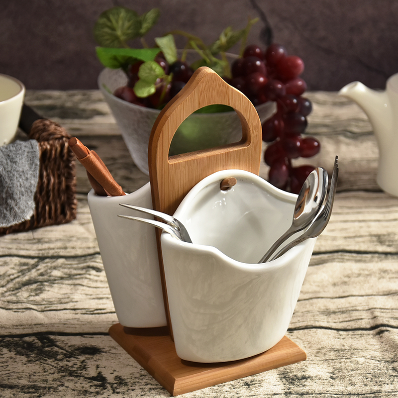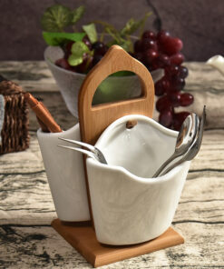 This chopstick holder combines the natural beauty of bamboo wood with the elegance of ceramic.