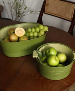 The basket is designed with multiple drainage holes to effectively drain excess water from washed vegetables and fruits. This feature helps to keep produce fresh and prevents waterlogging.