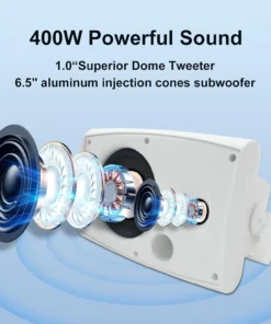 Herdio 2PCS 6.5” 400W Passive Outdoor Speakers Wired Waterproof Wall Mount Speakers With Loud Volume Suitable For Patio Garden