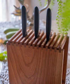 This upscale wood knife holder adds a touch of luxury to your kitchen countertop while also showcasing your collection of knives. It is a practical and stylish choice for any home cook or professional chef.