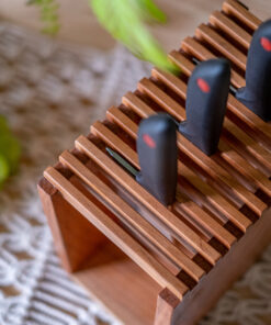 Crafted from solid, high-quality wood, this knife block shelf exudes elegance and durability. Its upscale design is inspired by Japanese craftsmanship, combining functionality with aesthetics.