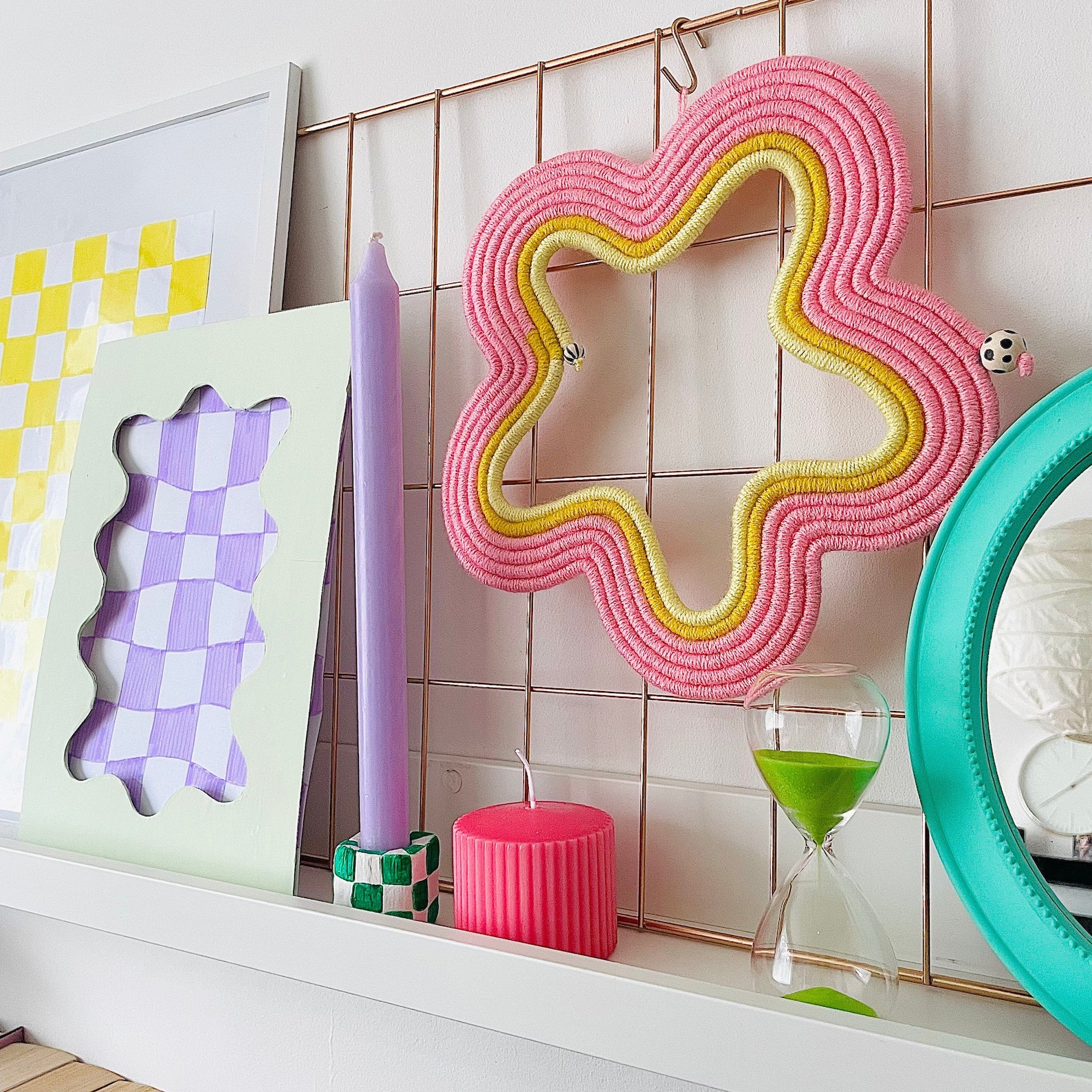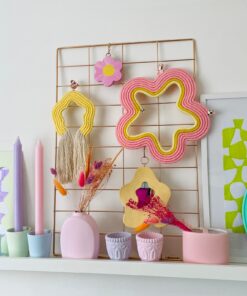 Macrame Flower Wall Hanging, Pink And Yellow Wall Art