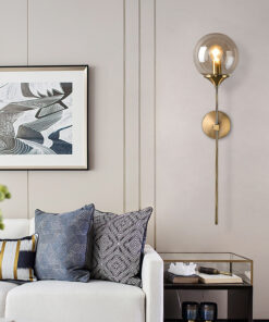 • Minimalism wall lamp has a long column stand arm and amber glass globe, which balances simple industrial lines with traditional charm to create a beautifully balanced lighting source.