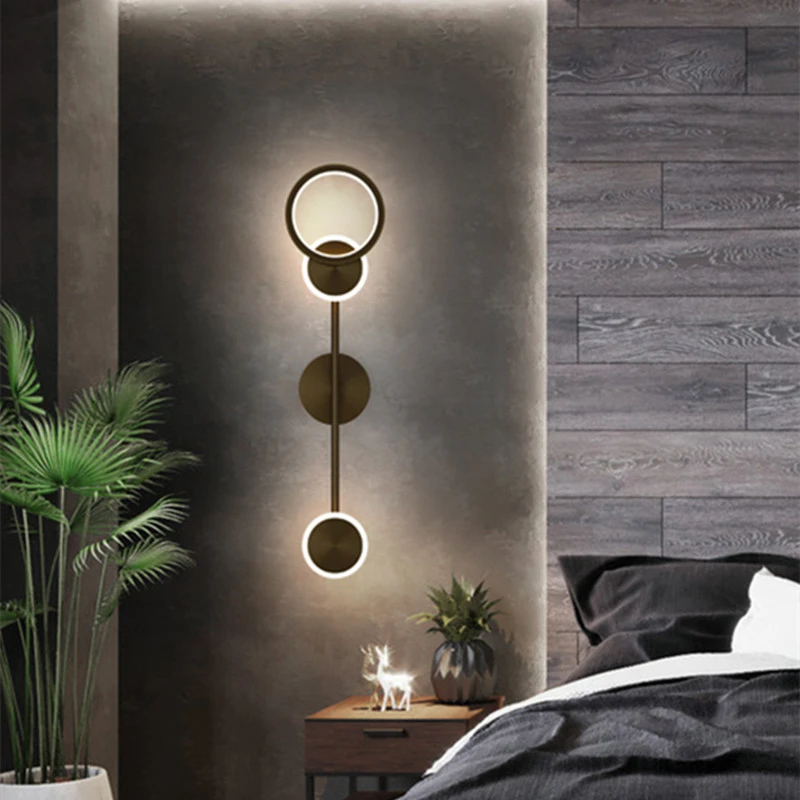 Nordic Black Gold Bedside Wall Lamp Metal Acrylic Wall Sconce Hallway Background LED Wall Lamp For Living Room Wall Mount Light