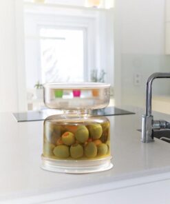 Multipurpose Pickle Jar: It’s quite convenient to use. Just flipp it over to easily switch between dry and wet food, not just for pickled cucumbers. Also great for storing different types of pickles, or for salad mixes, olive, black cherries. No need to throw away the pickle brine, the brine can be reused to make more pickles or add flavor to any meal.