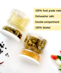 Adopting an hourglass and sealed lid design, this jar can cleverly separate liquids from food and will not easily spill when you turn it upside down for storage.