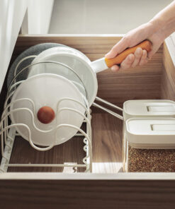 The retractable feature allows you to adjust the size and length of the bracket according to your pot covers’ dimensions. This flexibility ensures a snug fit and efficient use of space on your countertop.