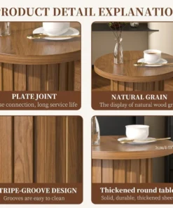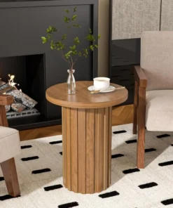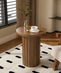 This item is a stylish small end table that combines a modern fluted design with a rustic walnut finish, making it a versatile addition to any home decor. It features a round tabletop and a vertical fluted panel, offering a unique blend of farmhouse and contemporary aesthetics. The table is crafted from durable material, ensuring it’s both reliable and sturdy. Its innovative base design maximizes ground contact, enhancing stability and ensuring it remains secure during everyday use. The side table is multifunctional and can be placed next to a bed, sofa, or used as a coffee table, drinks table, nightstand, end table, corner table, or plant stand. It’s suitable for various rooms including living rooms, bedrooms, balconies, and small spaces. With dimensions of 17.7 inches in diameter by 22 inches in height, this compact table is space-efficient and easy to move around, weighing only 22.04 pounds. Assembly is straightforward, thanks to a well-labeled manual with clear instructions for easy setup. Customer support is also available to assist you both before and after your purchase, ensuring a hassle-free experience.