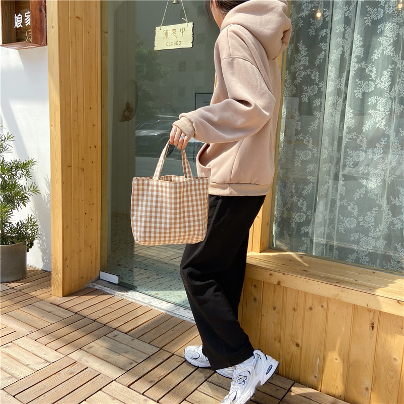 Japanese Casual Color Wide Stripe Plaid Tote Bag Student Reusable Shopping Bags