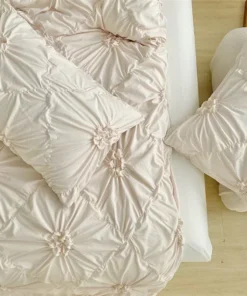 - Elevate your sleep sanctuary with the elegance of our Three-dimensional Pinch Pleated Crafts Double Duvet Cover Set, where meticulous detailing meets generous dimensions for a truly opulent experience